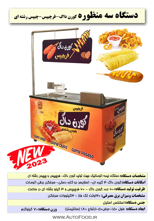 دستگاه سه منظوره کورن داگ ، فرچیپس،چیپس رشته ای